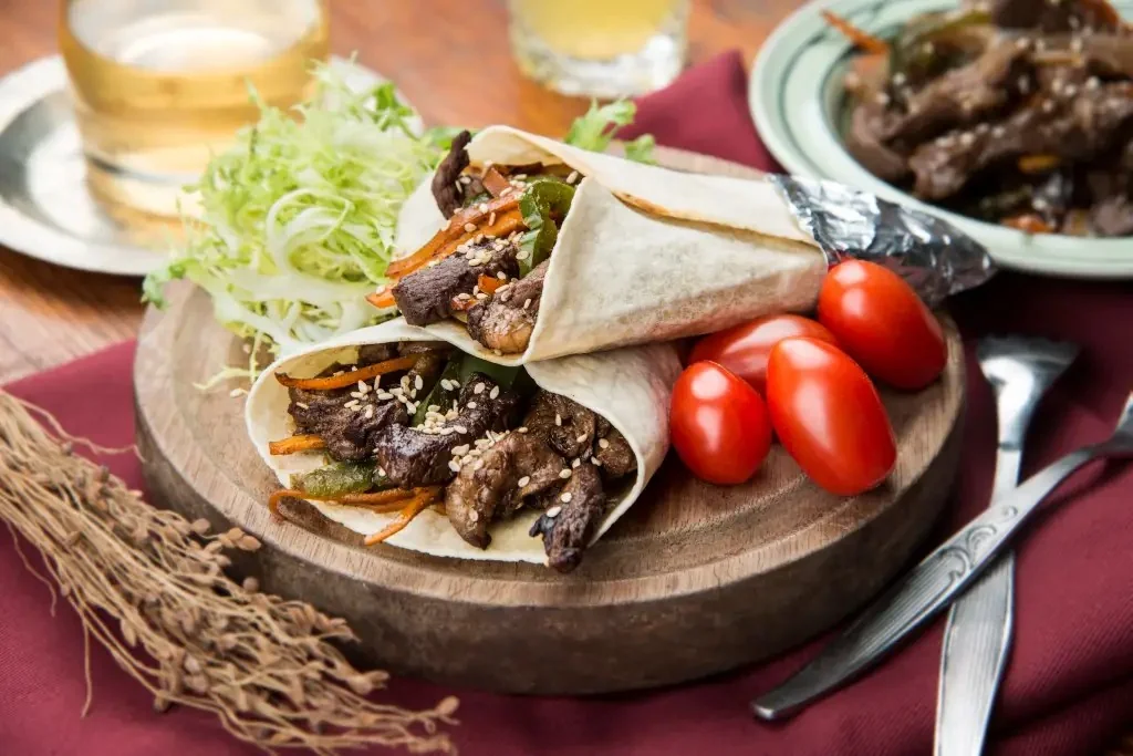 Luego añadir el lomo cortado en tiritas, salsa de soja y condimentar a gusto. Cocinar hasta que la carne esté completamente cocida. Espolvorear con semillas de sésamo, colocar el relleno dentro de las Rapiditas Bimbo, disponer en forma de conos y servir.